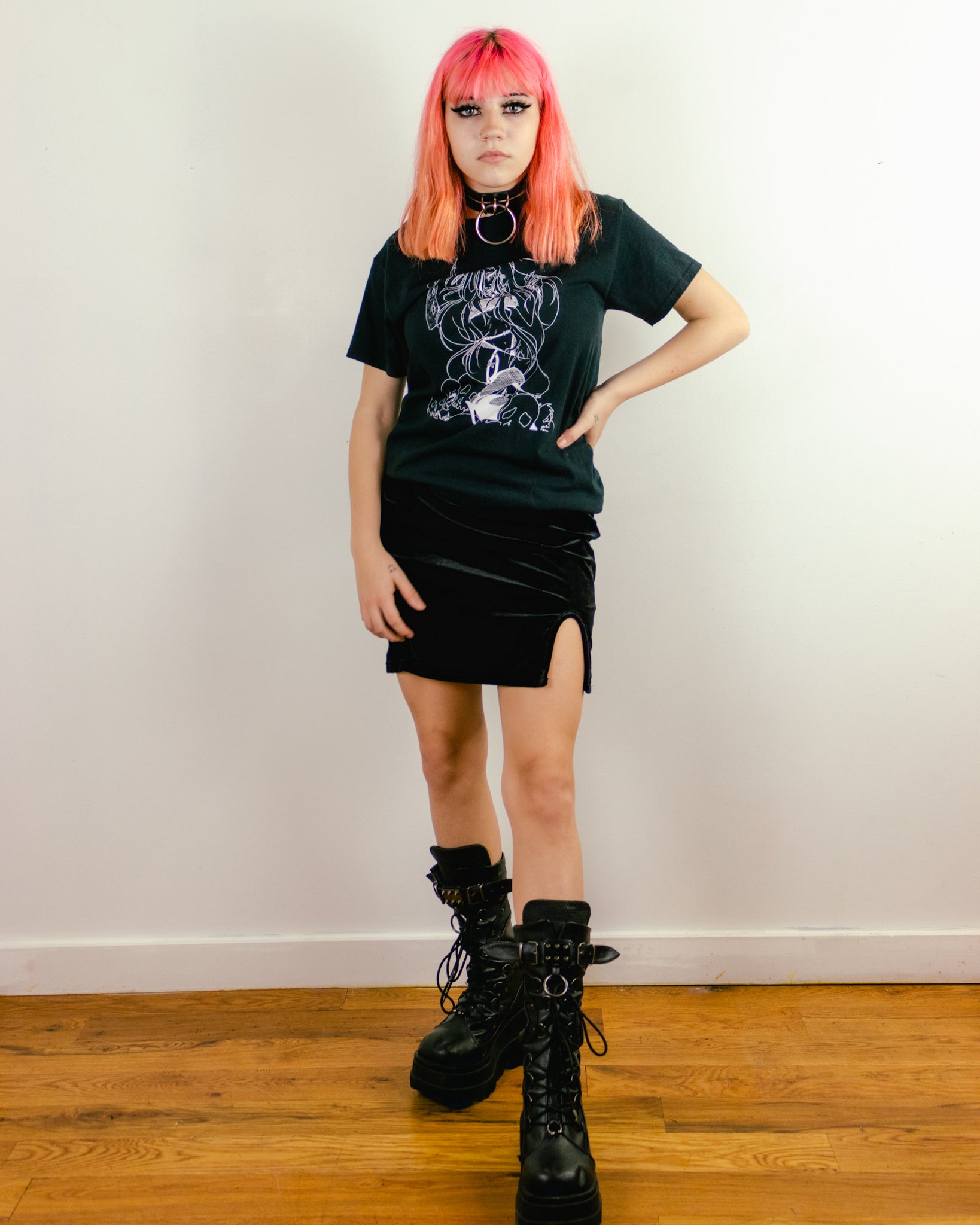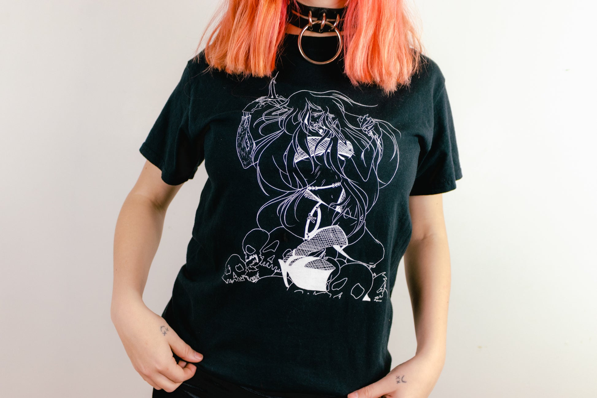 Stand out in style with the Goth Babe Tee, a versatile staple for your alternative wardrobe. Featuring a striking full-color design by @rottinghair, this tee captures both attitude and artistry—perfect for those who want to express their edge with confidence.