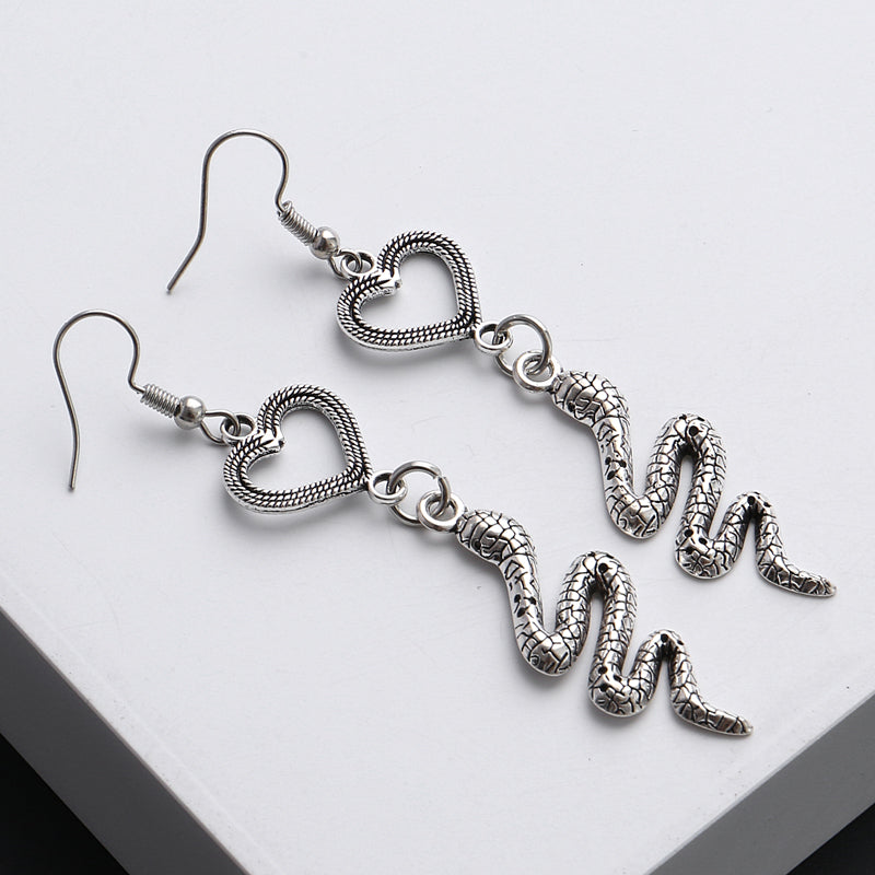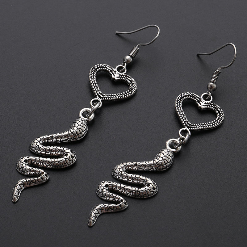 Rich, intricate, and dark, these earrings are going to help you play around with texture, movement, and statement in a beautiful lightweight set of earrings. Twisted ropes hang in the shape of a heart with three layers to really bring out its presence. Sneaking up on it is a twisting scaled snake that creates that gothic steampunk vibe that you’re going for. Great for really putting some personality into your accessories in fine form. Equal parts mystical and natural for the best of both in one simple style. It’ll be hard to top that one when it comes to earrings that can say so much!