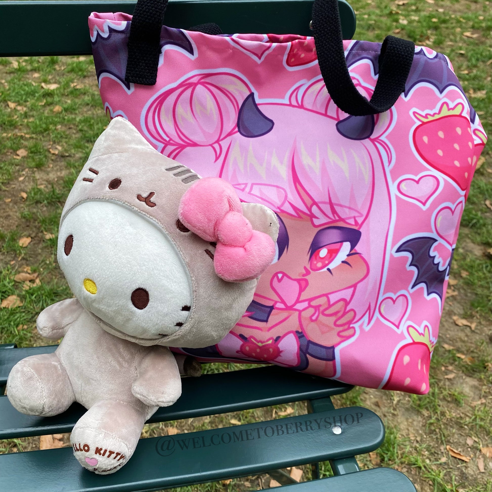 Turn heads and make a statement with this bright pastel pink kawaii tote bag! Featuring an original design of a gorgeous tan Waifu surrounded by a dreamy pastel goth background (with adorable berries, of course 🍓), this bag is the perfect blend of cute and edgy. Designed to celebrate POC representation in alternative and kawaii fashion, this tote isn’t just about looks—it’s made to handle everything you need, holding up to 44 lbs with ease!